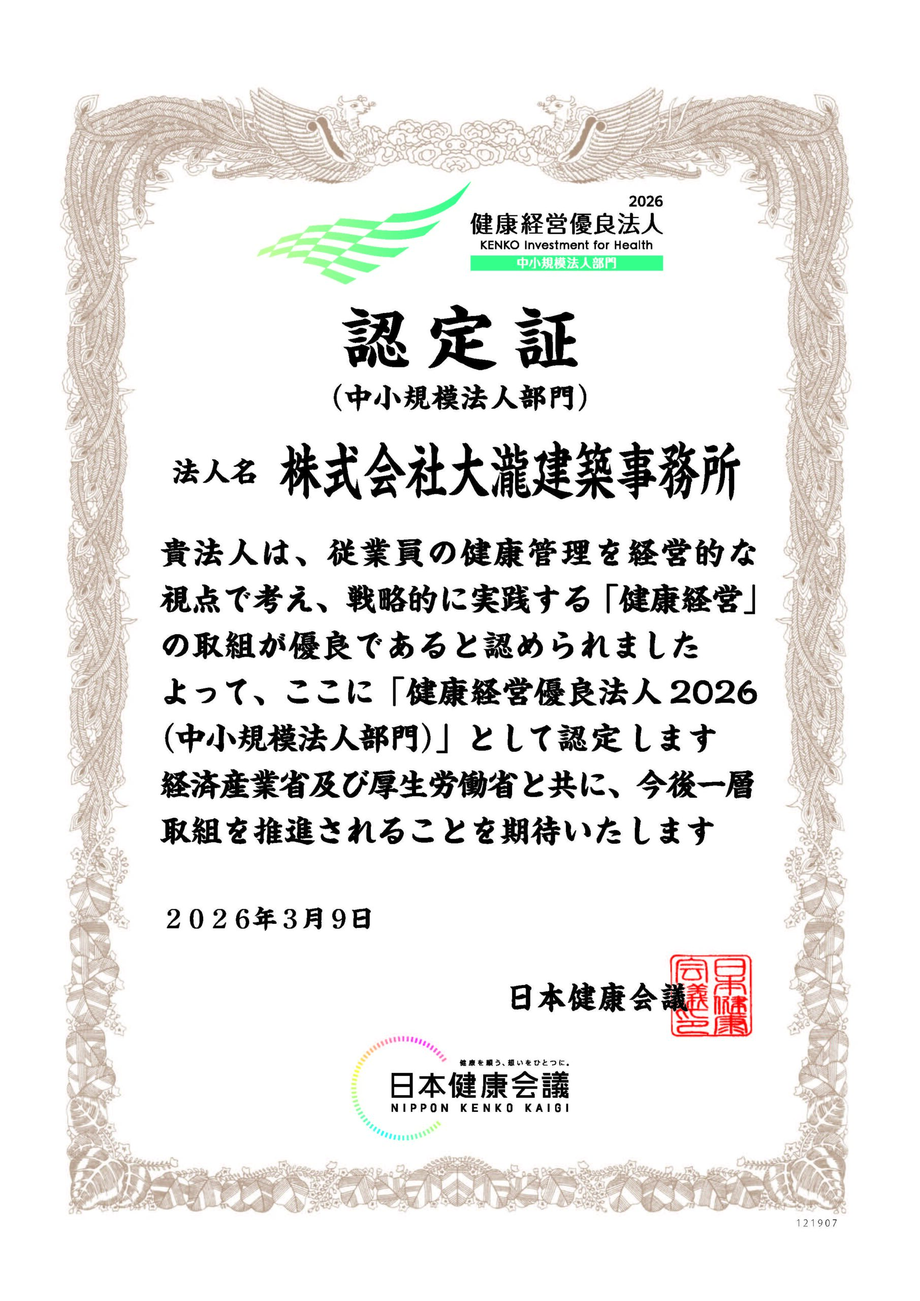 経済産業省および日本健康会議が共同で実施する「健康経営優良法人認定制度」において、弊社は「健康経営優良法人2026(中小規模法人部門)」に認定されました。