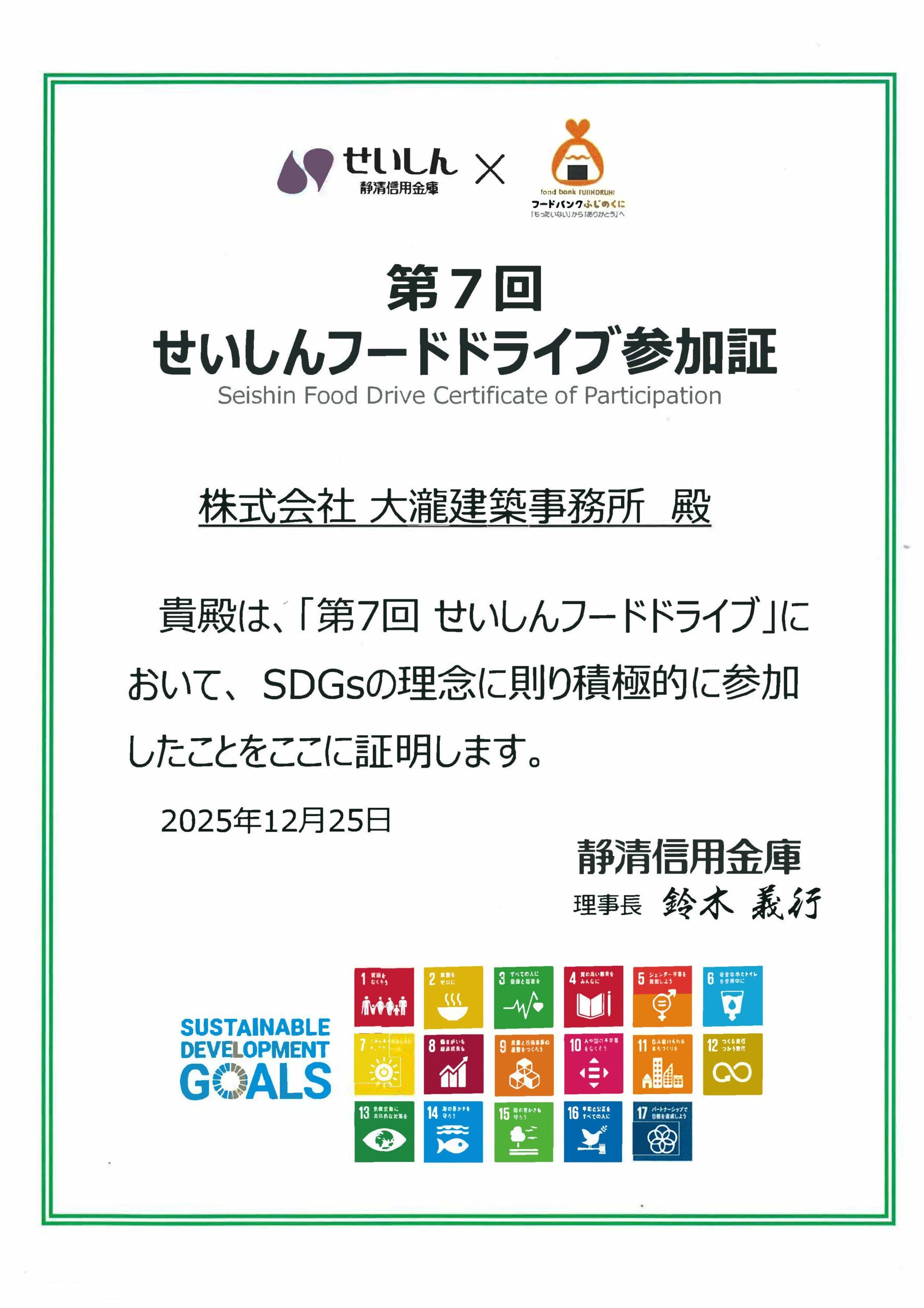 弊社は、静清信用金庫様が実施する食料品寄附運動「せいしんフードドライブ」に参加しました。