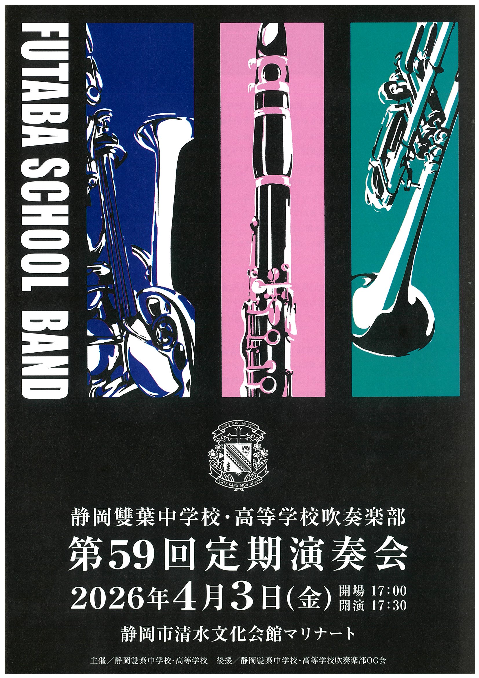 2026年4月3日(金)、静岡市清水文化会館マリナートにて開催された「静岡雙葉中学校・高等学校吹奏楽部 第59回定期演奏会」に協賛いたしました。